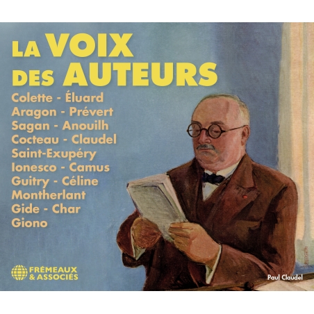LES VOIX DE PAUL ÉLUARD, LOUIS ARAGON, JACQUES PRÉVERT, COLETTE, FRANÇOISE SAGAN, JEAN ANOUILH, JEAN COCTEAU, PAUL CLAUDEL, ANTOINE DE SAINTEXUPÉRY, EUGÈNE IONESCO, ALBERT CAMUS, SACHA GUITRY, LOUIS-FERDINAND CÉLINE, ANDRÉ GIDE, RENÉ CHAR, JEAN GIONO ET HENRY DE MONTHERLANT.